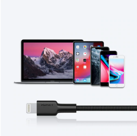 مقاومة عالية للكيبل المصنوع من النايلون المظفر متوافق مع أجهزة iPhone و iPad و iPod المزودة بموصلات Lightning وأجهزة Mac أو أجهزة الكمبيوتر الأخرى المزودة بمنافذ USB-C أو Thunderbolt 3.