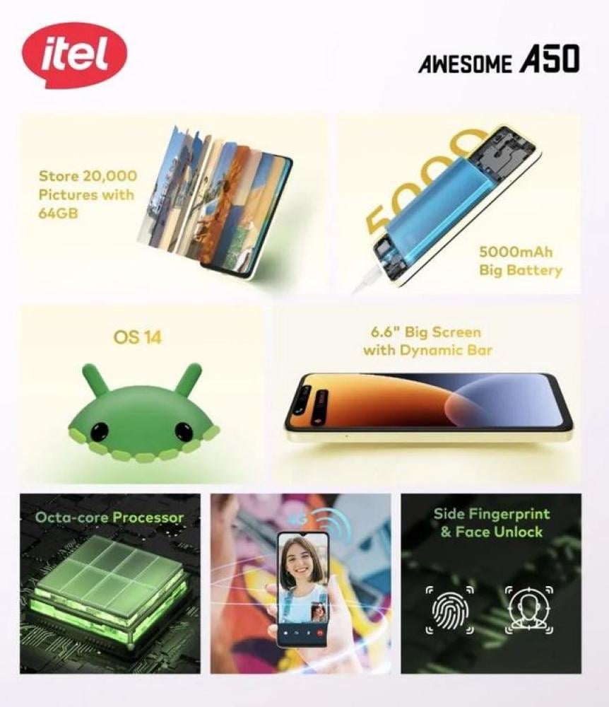 ايتل A50 أسود ذاكرة 128 جيجا رام 12 جيجا